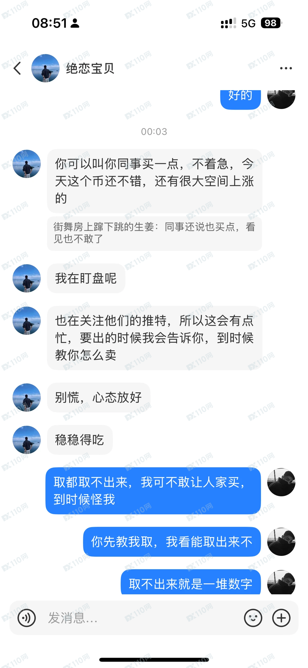 血淋淋的教训,一直都相信没有陌生人会无缘无故主动带你赚钱,这也是为什么一开始就打算用500,加仓也只加了500的原因,他还让我加,我说这种一口吃成胖子的宁愿不做,买个教训吧。发出来给网上的小白提个醒也算是做个好事