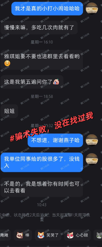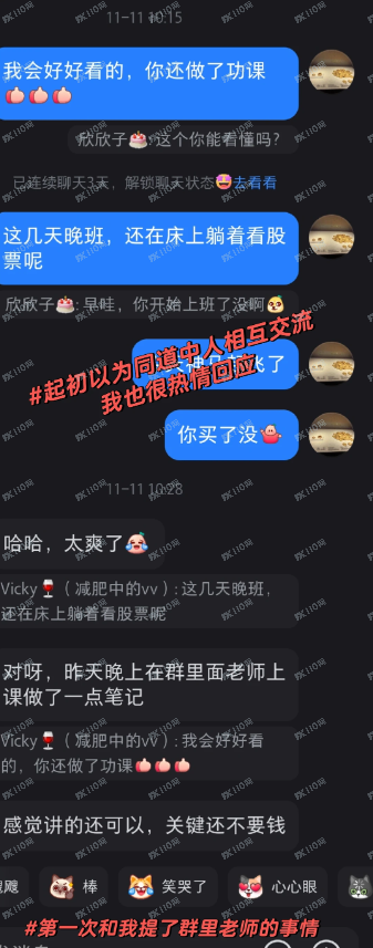 之前在某股票帖子下面留了一个评论,这个姑娘就私信我了,刚开始友好交流以为遇到志同道合的朋友了,主动加了关注