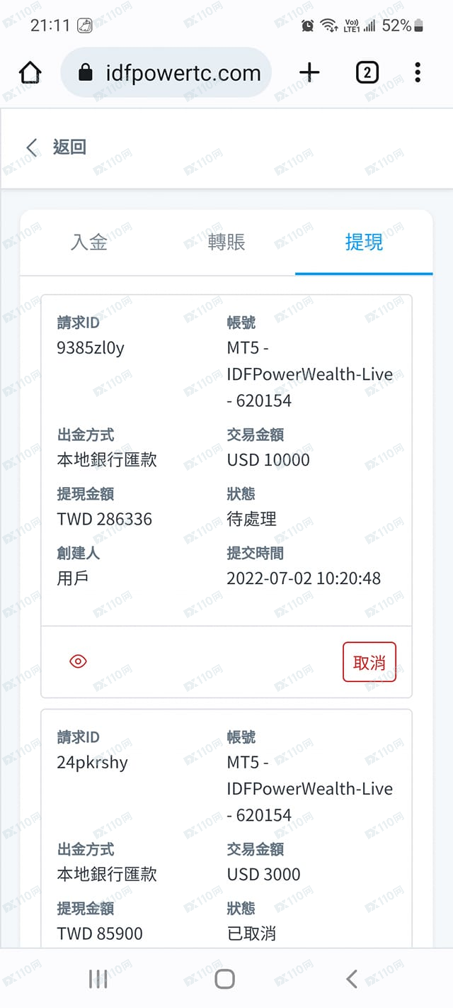 曝光这个IDF黑平台,当初做的时候说自己是mt5正规公司,听他们充值送赠活动投入4万,之后就不能出金,每次都会找理由取消提现申请